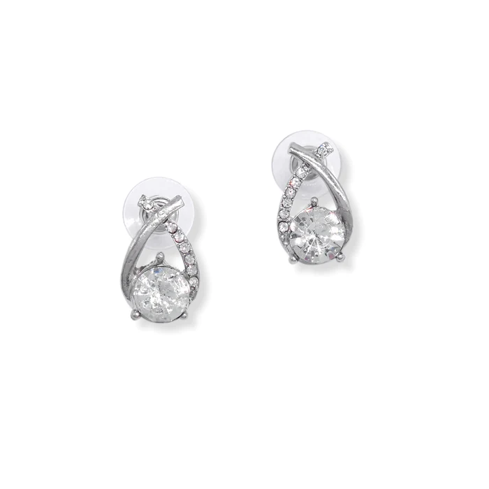 Silver studs featuring a crossover design, adorned with sparkling diamantes. A piece that intertwines simplicity and glamour.