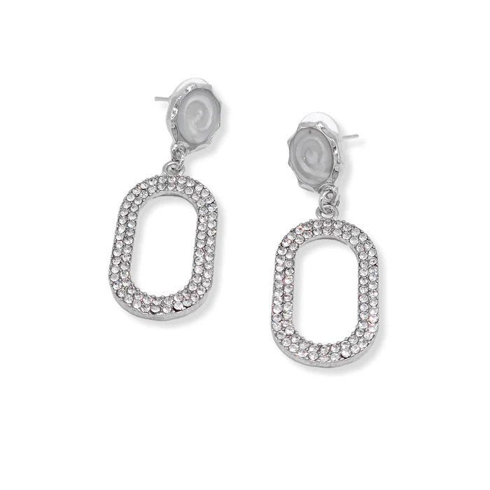 Statement silver studs, encrusted with shimmering diamantes in an elegant oval shape. A testament to timeless sophistication.